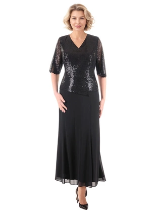 Elegancka czarna sukienka wieczorowa – długa suknia zdobiona cekinami 39415