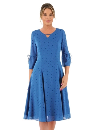 Sukienka na wesele plus size, rozkloszowana kreacja z szyfonu w groszki 38294