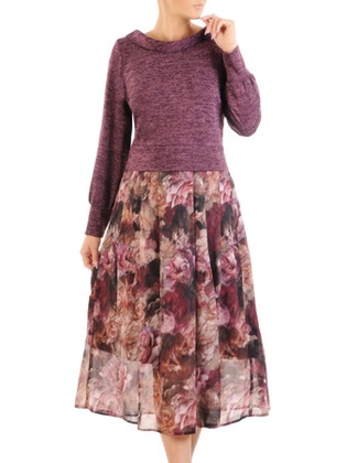Jesienna sukienka Celestia XXV, elegancka kreacja w kwiatowy wzór.