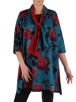 Luźna tunika z modnym szalem/paskiem 19450