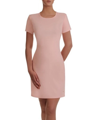 Sukienka z tkaniny, liliowa kreacja z krótkim rękawem 20350.