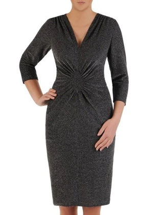 Trapezowa sukienka damska z brokatowym zdobieniem 33673