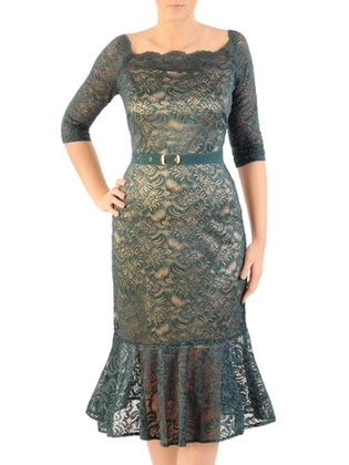 Zielona kreacja z koronki z ozdobnie wykończonym dekoltem 34558
