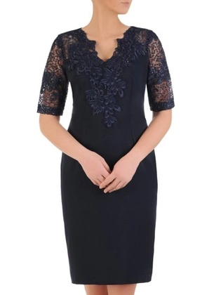 Sukienka z koronkową wstawką, chabrowa kreacja wyszczuplająca 21772