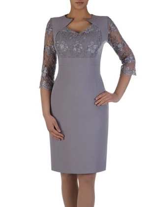 Sukienka wykończona koronką 15745, kreacja z modnym dekoltem.