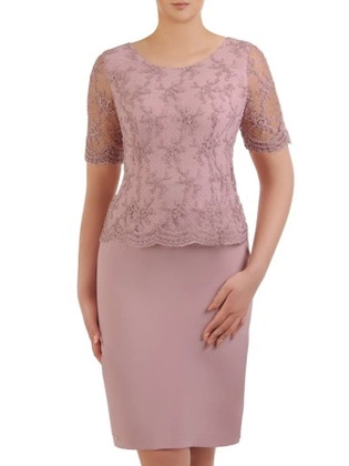 Wizytowa sukienka damska, pudrowa kreacja z tkaniny i koronki 29921