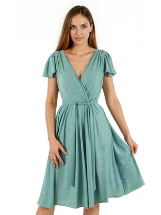 Elegancka, zielona sukienka z ozdobnie wyciętymi rękawami 34430