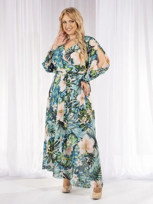 Szyfonowa sukienka z rozpinanym dekoltem i gumką w pasie 31073
