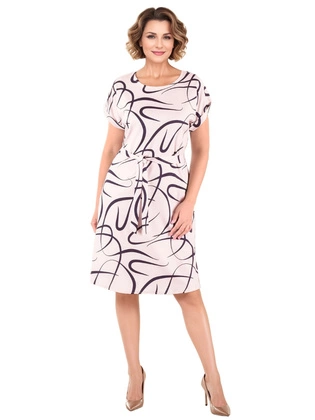 Kremowa sukienka w kwiaty z szyfonu – rozkloszowana sukienka midi z ozdobnym paskiem 39917