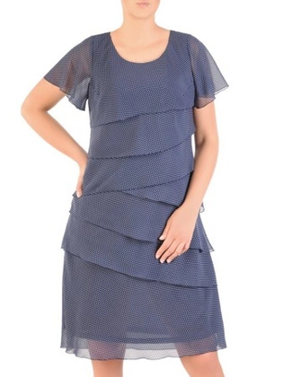 Granatowa sukienka w groszki, wielowarstwowa kreacja z szyfonu 30126
