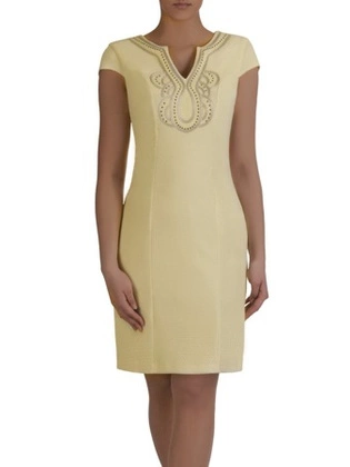 Sukienka damska Asenta III, wiosenna kreacja z oryginalnym dekoltem.