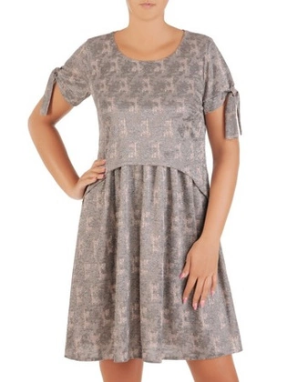 Beżowa sukienka z modną wstawką, rozkloszowana kreacja wizytowa 22158