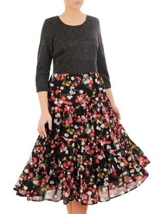 Rozkloszowana sukienka w kwiaty, kreacja ze zwiewną spódnicą 31663