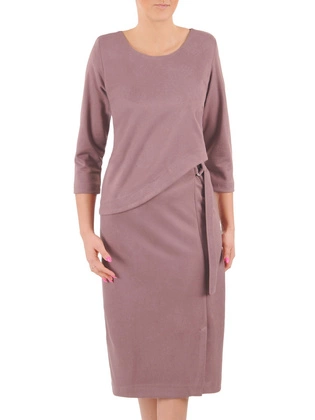 Kopertowa sukienka wyszczuplająca, kreacja z ozdobnymi marszczeniami 21942