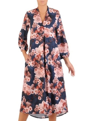 Sukienka z asymetrycznym kołnierzem, jesienna kreacja w kwiaty 21800