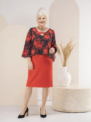 Elegancka sukienka w kwiaty, kreacja maskująca niedoskonałości 28898