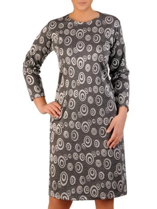 Sukienka z luźnym, połyskującym topem, kreacja maskująca brzuch 24225