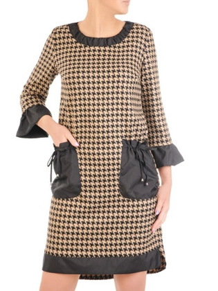 Sukienka w kratę z ozdobnym przodem maskującym niedoskonałości 31343