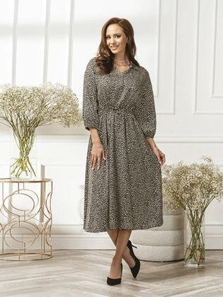 Rozkloszowana sukienka z tkaniny z rozpinanym dekoltem 32352