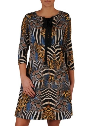 Sukienka damska 18482, luźna kreacja w zwierzęcym wzorze.