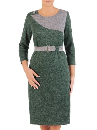 Prosta sukienka z dzianiny, kreacja z paskiem 27220