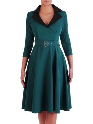 Sukienka rozkloszowana midi, elegancka kreacja z modnym pensjonarskim kołnierzem 14729