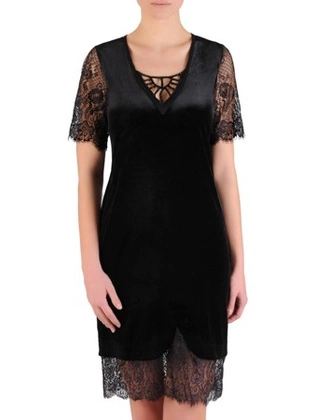 Wieczorowa trapezowa sukienka wykończona modną koronką 25182