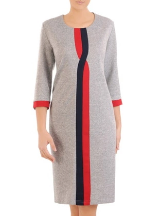 Dzianinowa sukienka damska z kontrastowymi wstawkami 28411