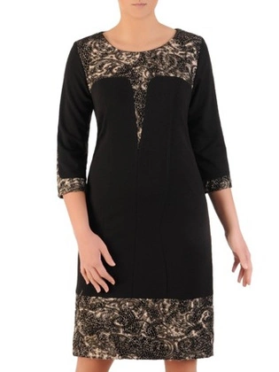 Wieczorowa sukienka z łączonych tkanin, kreacja wykończona koronką 19165
