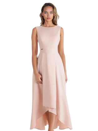 Pudrowo-różowa sukienka midi z tiulu – elegancka sukienka na wesele z kopertowym dekoltem i połyskiem 39888