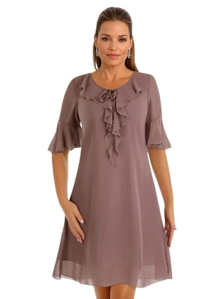 Sukienka z żabotem, zwiewna kreacja z szyfonu 19781