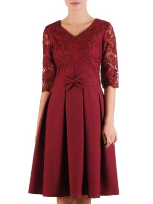 Sukienka z baskinką i koronkowymi wstawkami, kreacja w modnym kolorze 20174