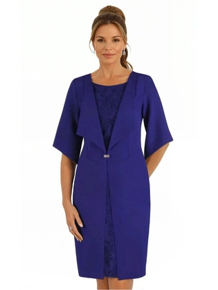 Sukienka damska 14739, elegancka kreacja z koronkowymi rękawami.