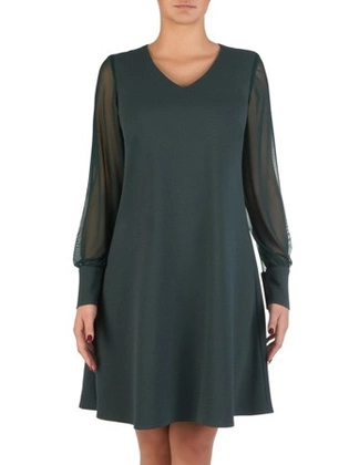 Sukienka z dzianiny, prosta kreacja z modnymi rękawami 28896