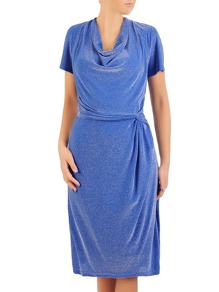 Niebieska sukienka z połyskującej dzianiny z ozdobnym marszczeniem 30974
