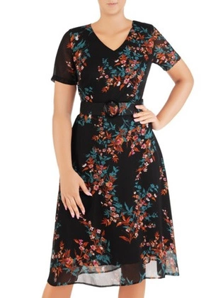 Wyszczuplająca sukienka w kwiaty z modnymi, szyfonowymi rękawami 16739