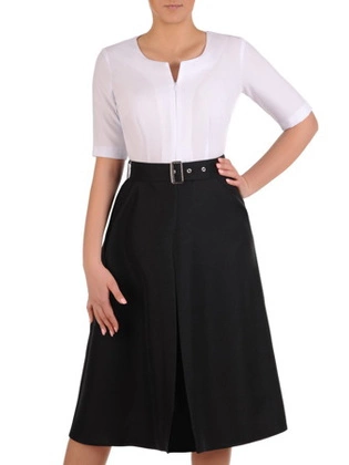 Wyszczuplająca sukienka z paskiem, dwukolorowa kreacja z tkaniny 19906.