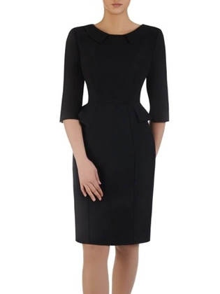 Sukienka damska Jolanta VIII, czarna kreacja z modną baskinką.