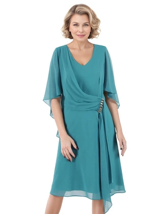 Turkusowa kreacja, modna sukienka w fasonie maskującym brzuch 26636
