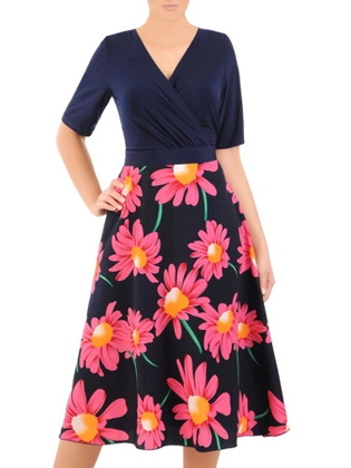 Prosta sukienka w kwiaty, kreacja z zamkiem przy dekolcie 27273