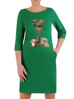 Zielona sukienka z modną aplikacją i kieszeniami 25742