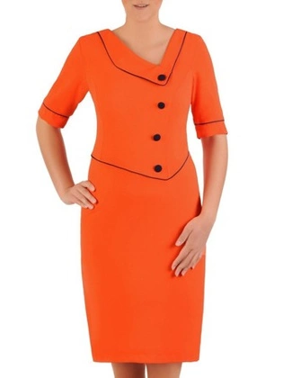 Sukienka damska, pomarańczowa kreacja z kontrastowymi wstawkami 26226