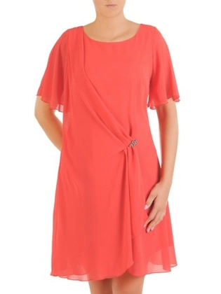 Koralowa sukienka ze zwiewnego szyfonu z wyszczuplającą zakładką 30411