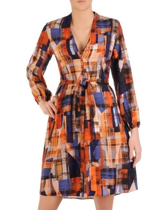 Sukienka kopertowa, wiosenna kreacja w geometrycznym wzorze 25553