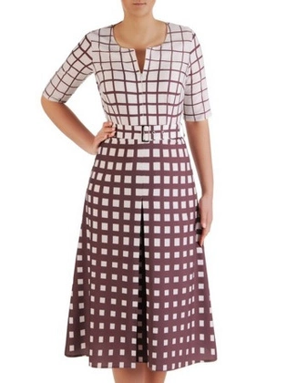 Sukienka w kratę, wyszczuplająca kreacja z paskiem 20019.