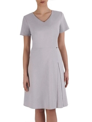 Rozkloszowana sukienka z tkaniny z rozpinanym dekoltem 32352