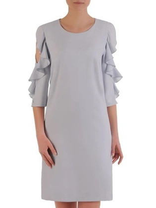 Sukienka z tkaniny, popielata kreacja z modnymi rękawami 20879.
