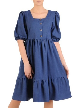 Elegancka, lniana sukienka z ozdobnymi guzikami 29022