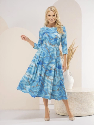 Zwiewna sukienka w modnym wzorze z paskiem 33254