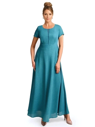 Elegancka, zielona sukienka z ozdobnie wyciętymi rękawami 34430